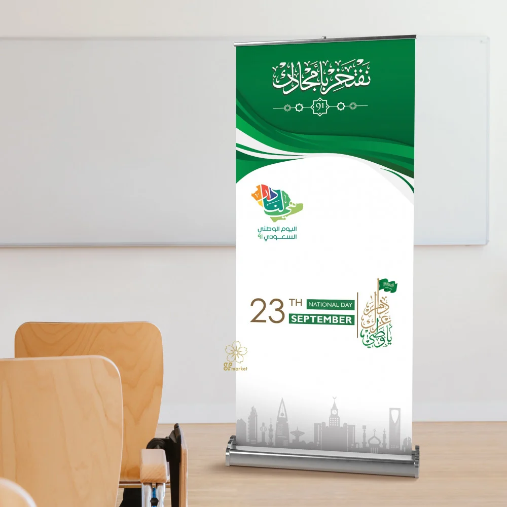 طباعة رول أب مخصصة بتصميمات احترافية، مثالية للمعارض والعروض الترويجية، لعرض رسالتك بشكل مميز وسهل النقل.